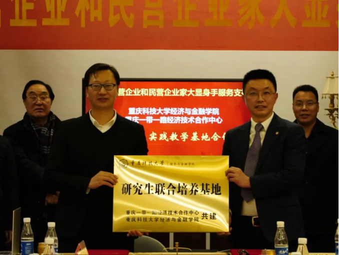重庆市江北区原区委副书记、区政府党组书记、区长欧茂林 重庆市工商联党组成员、副主席王进 传达精神环节,重庆市工商联党组成员、副主席王进带动参会嘉宾领学习近平总书记在民营企业座谈会重要讲话精神,传达重庆市委21日在渝州宾馆召开重庆市深入推动民营经济高质量发展大会精神。他从政策层面出发,强调了党中央、国务院和重庆市委、市政府如何支持民营经济高质量发展的举措,支持、帮助更多民营企业在重庆投资兴业,做优、做强、做大,提出一系列切口小、见效快的“微改革”,努力构建和打造亲清政商关系,切实为重庆民营企业和民营企业家发展民营经济指明了方向,让企业家们深切感受到政府部门的关怀与重视。 在主题会议环节,与会人员共同学习了习近平总书记在民营企业座谈会上的重要讲话精神,深刻领会讲话的精神实质。随后,围绕“重庆民营企业和民营企业家大显身手支撑”展开深入讨论。重庆市上海商会党委书记、会长韦根,重庆中经产业经济研究院院长高翔,重庆对外经贸学院创客学院院长张伟东教授,交通银行重庆九龙坡支行对公分管行长张君,重庆市商业联合会会长、重庆刘一手实业有限公司董事长刘梅,重庆市渝中区互联网界联合会会长、重庆智佳信息科技发展有限公司总经理李滨虹分别围绕文化和旅游、乡村振兴、产业经济发展、教育文化科技文化自信、金融服务民营企业、餐饮全球运营生活服务方式、“人工智能+行动”赋能千行百业等方面进行主题交流发言,分享了在政府资源、政策资源、媒体资源、客户资源、资本资源等方面的整合与利用经验,共同探索在新时代新征程中民营经济发展的新路径、新方法。从交流中可以感受到民营企业家们的创新精神和担当意识,也看到了重庆民营经济发展的无限潜力。大家围绕主题畅所欲言,思维碰撞出智慧的火花,共同探讨民营企业和民营企业家如何更好地发挥带动作用,为重庆经济社会发展贡献力量。 交通银行重庆九龙坡支行、重庆一带一路经济技术合作中心签订《战略合作协议》(签约仪式) 交通银行重庆九龙坡支行分别与重庆市上海商会、重庆市新兴媒体广告企业商会、重庆市上海商会、重庆中经产业经济研究院签订《战略合作协议》 金融机构综合授信战略合作签约仪式将会议氛围推向高潮。交通银行重庆九龙坡支行分别与重庆一带一路经济技术合作中心、重庆市新兴媒体广告企业商会、重庆市上海商会、重庆中经产业经济研究院四家单位签订《战略合作协议》,在协议中约定综合授信5亿元,以交通银行外贸通道贷、普惠e贷、线上抵押贷、交薪通等“展业通”、“益农通”等特色金融产品服务,重点支持民营企业及民营企业家大显身手、可持续的稳健发展。 重庆科技大学经济与金融学院、重庆一带一路经济技术合作中心签订《重庆科技大学经济与金融学院共建研究生实践教学基地合作协议》(授牌仪式) 重庆科技大学经济与金融学院分别与重庆市上海商会、重庆中经产业经济研究院、重庆刘一手实业有限公司签订《重庆科技大学经济与金融学院共建研究生实践教学基地合作协议》(授牌仪式) 校企协同育人合作共建签约及授牌仪式将会议氛围推向高潮。重庆科技大学经济与金融学院分别与重庆一带一路经济技术合作中心、重庆市上海商会、重庆中经产业经济研究院、重庆刘一手实业有限公司四家单位签订《重庆科技大学经济与金融学院共建研究生实践教学基地合作协议》(协议约定合作5年有效期),在协议中约定在重庆科技大学国际经济与贸易、会计学、资源与环境经济学、社会工作四个专业,通过制订实习实训方案、促进人力资源交流交换、开展科研项目研究与校企合作项目落地等服务,共同为国家级一流专业建设点提供服务支撑,推动政校企协同育人合作,增强高等教育服务经济社会发展能力。 这两项签约搭建起了合作的坚实桥梁,为各方实现互利共赢、共同发展奠定了基础。通过银企有效对接合作,民营企业和民营企业家将获得更多金融支持,而校企合作则为学生提供实践平台,为企业培养专业人才,实现教育与产业的紧密结合。 交通银行重庆分行普惠部产品经理邓延平 交通银行重庆分行普惠部产品经理邓延平以《交通银行支持民营小微企业融资服务方案》进行专题分享,让参会的民营企业和民营企业家们对交通银行的普惠金融产品与政策有了进一步的了解。这些金融特色产品和政策将为民营企业的发展提供更多资金支持和金融服务,助力民营企业解决发展中的资金难题。 重庆市新兴媒体广告企业商会会长、智享必达数字广告产业园董事长何永中 重庆市新兴媒体广告企业商会会长、智享必达数字广告产业园董事长何永中代表主办单位代表对会议进行了回顾与总结,鼓励民营企业和民营企业家一起携手共进,下一步,我们将继续联合重庆一带一路经济技术合作中心、重庆市商业联合会、重庆市上海商会等平台的综合能力与实力,推动重庆民营经济健康发展、高质量发展方面提供更加深入的服务点、支撑点,切实要民营企业及民营企业家有所收获和收益。最后,何永中会长根据本次会议主题内容、参会嘉宾及企业未来期许,现场创新创作了一篇打油诗。 重庆市商务委员会原一级巡视员熊林 特邀嘉宾重庆市商务委员会原